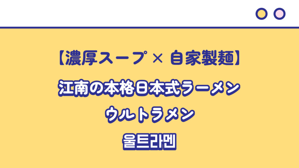 【濃厚スープ×自家製麺】江南の本格日本式ラーメン ウルトラメン 울트라멘