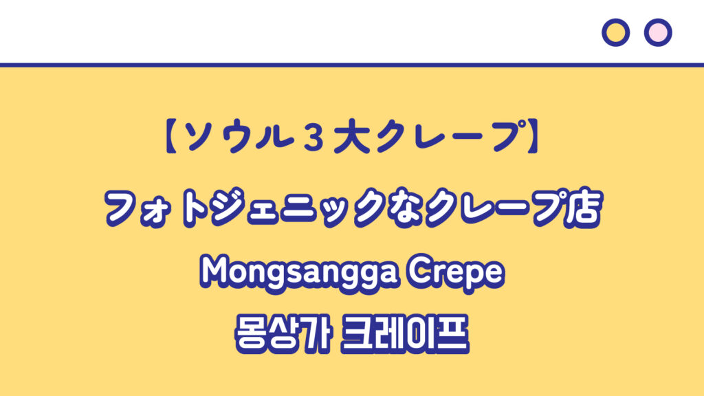 ソウルのクレープレストラン トップ3 Mongsangga Crepe 再訪レビュー(翻訳) https://m.blog.naver.com/buy_partner/223970877574 ソウルで“映えるクレープ”を楽し... -